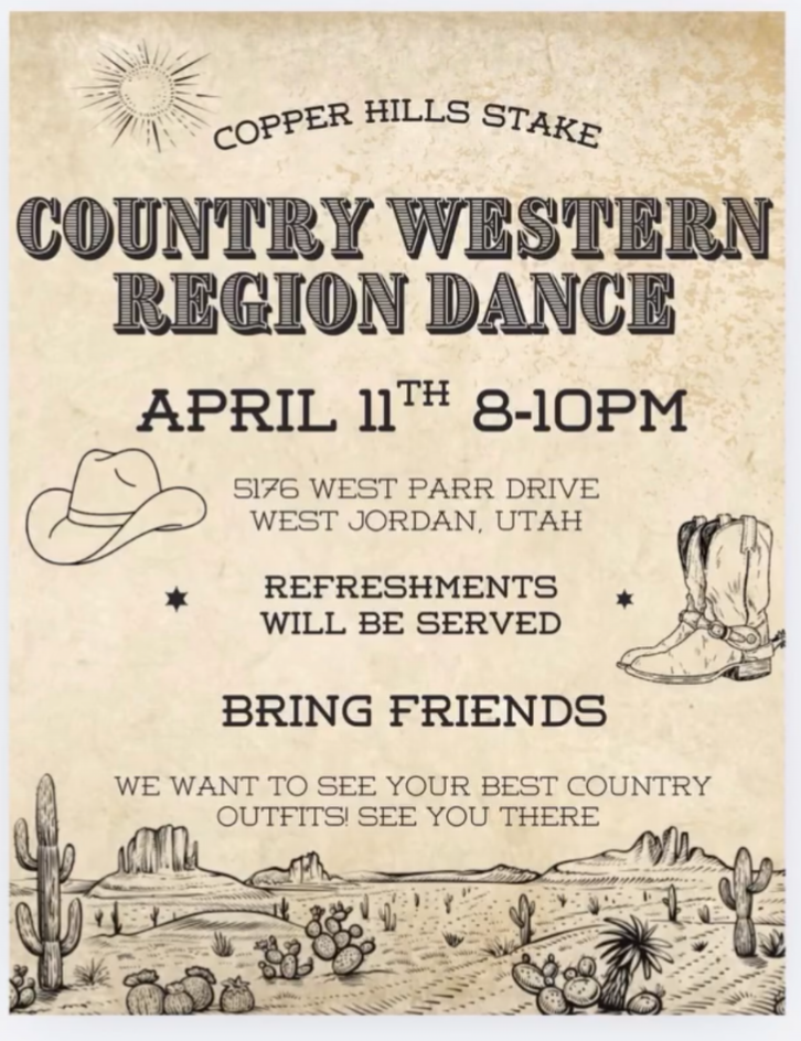 (Except for Holidays, or Ward, Stake and General Conference Sundays)